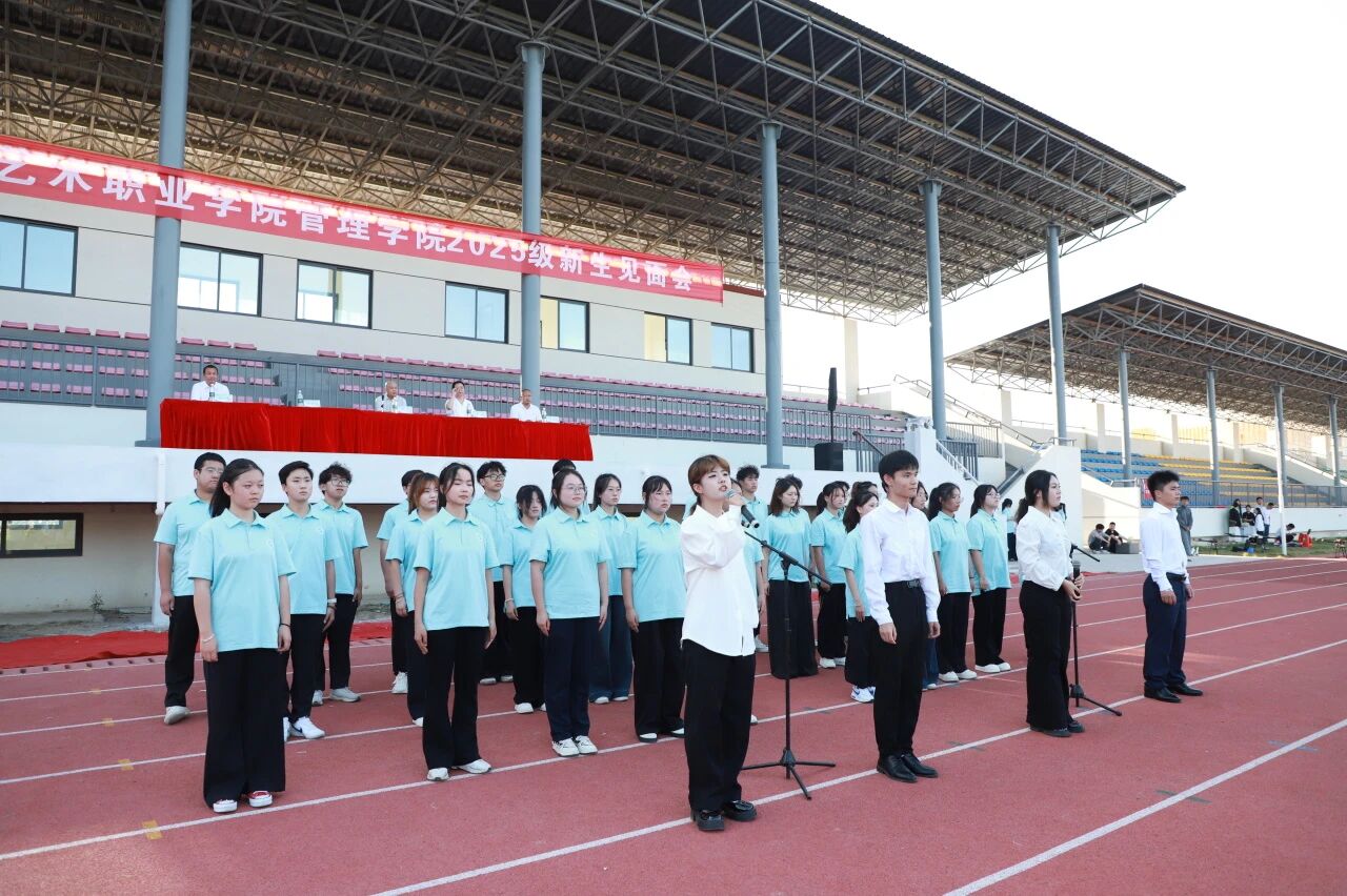 会议在庄严的国歌合唱声中拉开序幕,全体师生肃立齐唱。2025级新生代表赵琪上台发言,分享初入校园的体验与对未来的展望,言语中充满了对大学生活的期待,展现出新一届管院学子的蓬勃朝气。