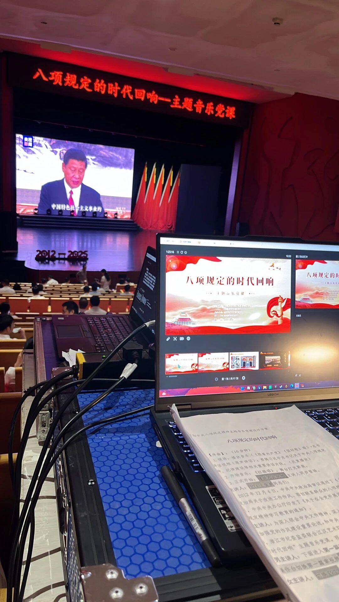 本次活动中,湖北省新时代职业教育名师罗俊教授工作室的罗俊教授、吴丹老师为音乐党课精心制作PPT,从文稿内容梳理、资料收集整理到版面设计,手绘了多个党建、清廉主题版式,更好助力音乐党课。