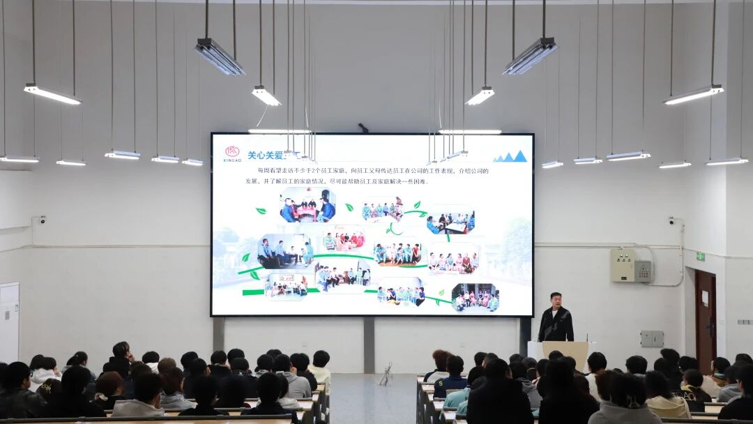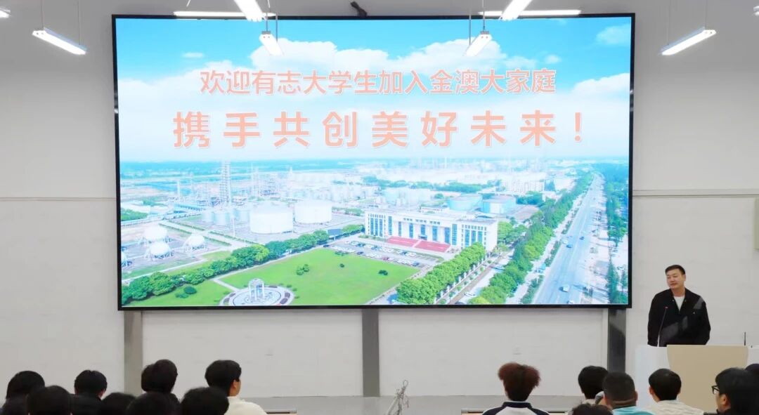 通过宣讲,同学们了解到金澳科技不仅具备雄厚的产业硬实力,更拥有前瞻性的人才软实力。金澳科技始终将安全生产、人文关怀与清晰战略作为发展基石,公司特别设立“金澳订单班”,通过定向培养模式,为入选学生提供系统化培训和明确的晋升通道,助力其快速成长为企业的中坚力量。