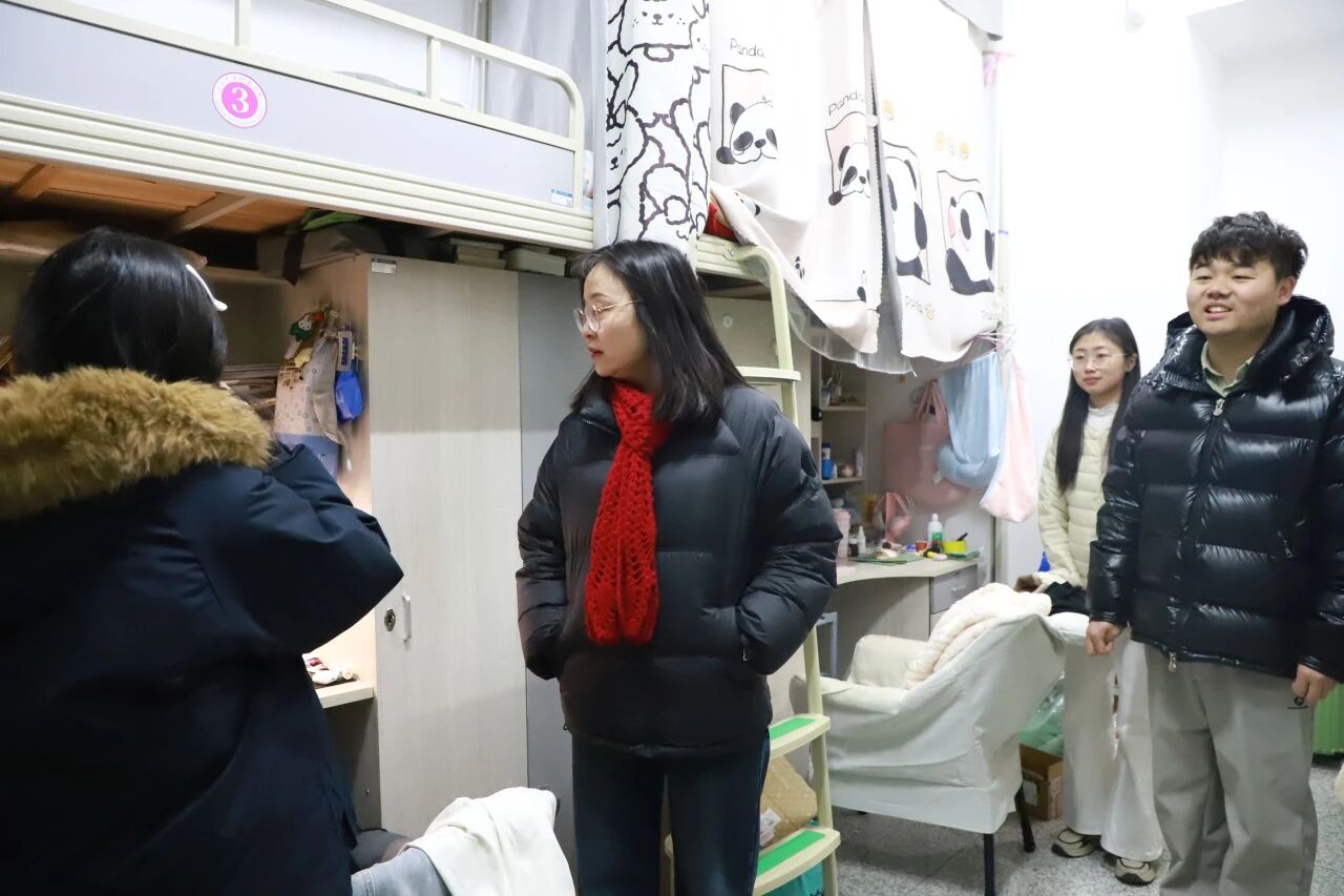 走访中,罗俊院长与同学们亲切交谈,详细询问期末备考情况、假期行程规划及生活需求。针对冬季气温偏低,她特别提醒同学们做好防寒保暖,根据天气变化及时增添衣物,谨防流感侵袭。