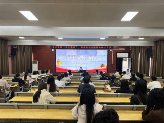 江职新闻网讯(通讯员 杜彦)9月28日下午,党委书记李飞在综200阶梯教室,为马克思主义学院全体教师作《大力弘扬“三大精神” 凝聚起支点建设的强大力量》的专题宣讲。