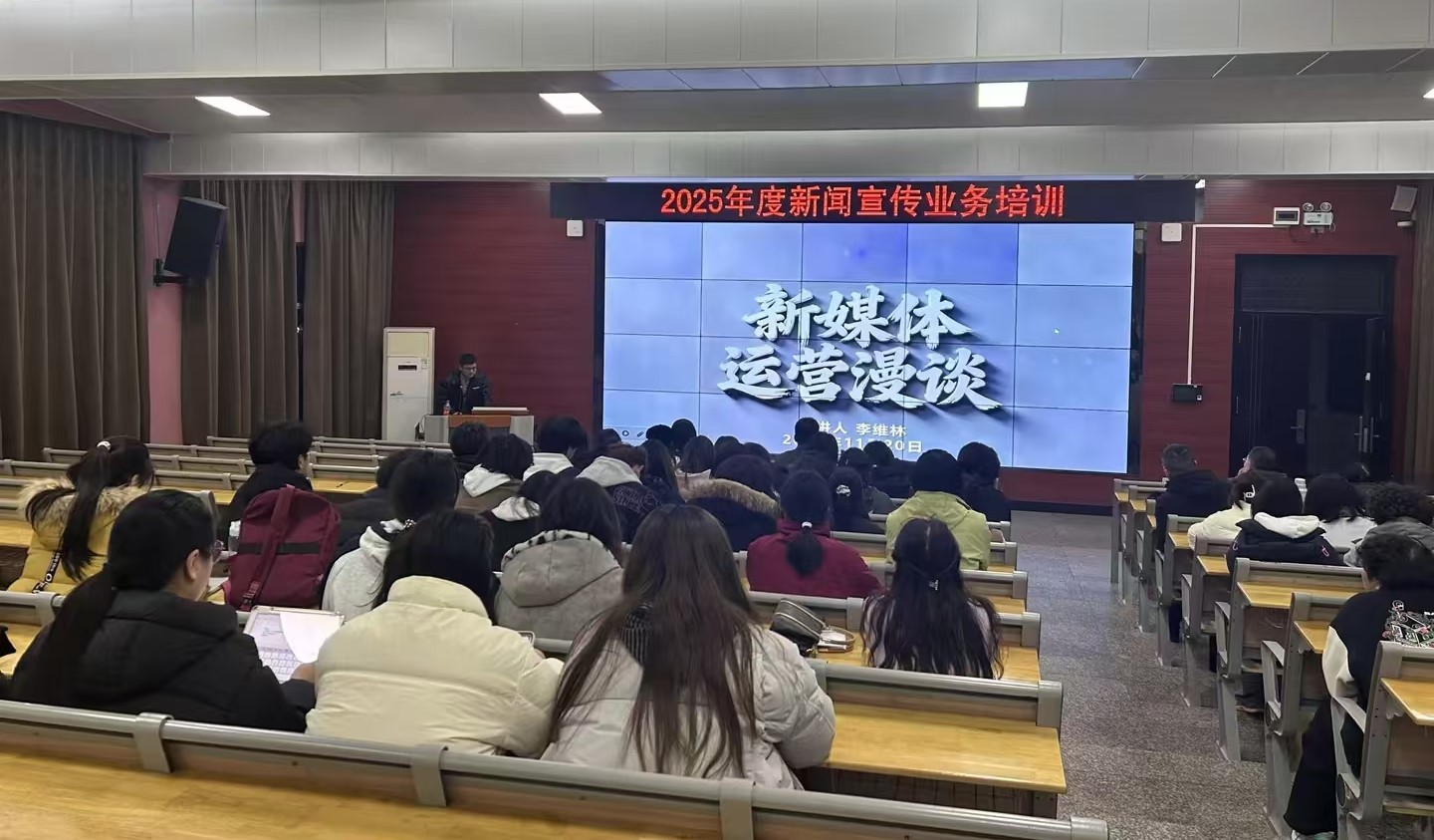 11月20日晚,江汉艺术职业学院在西校区综合楼200室举办2025年度新闻宣传业务培训。湖北日报主任记者黄璐应邀授课,各院部师生通讯员及处室宣传干事共70人参加。