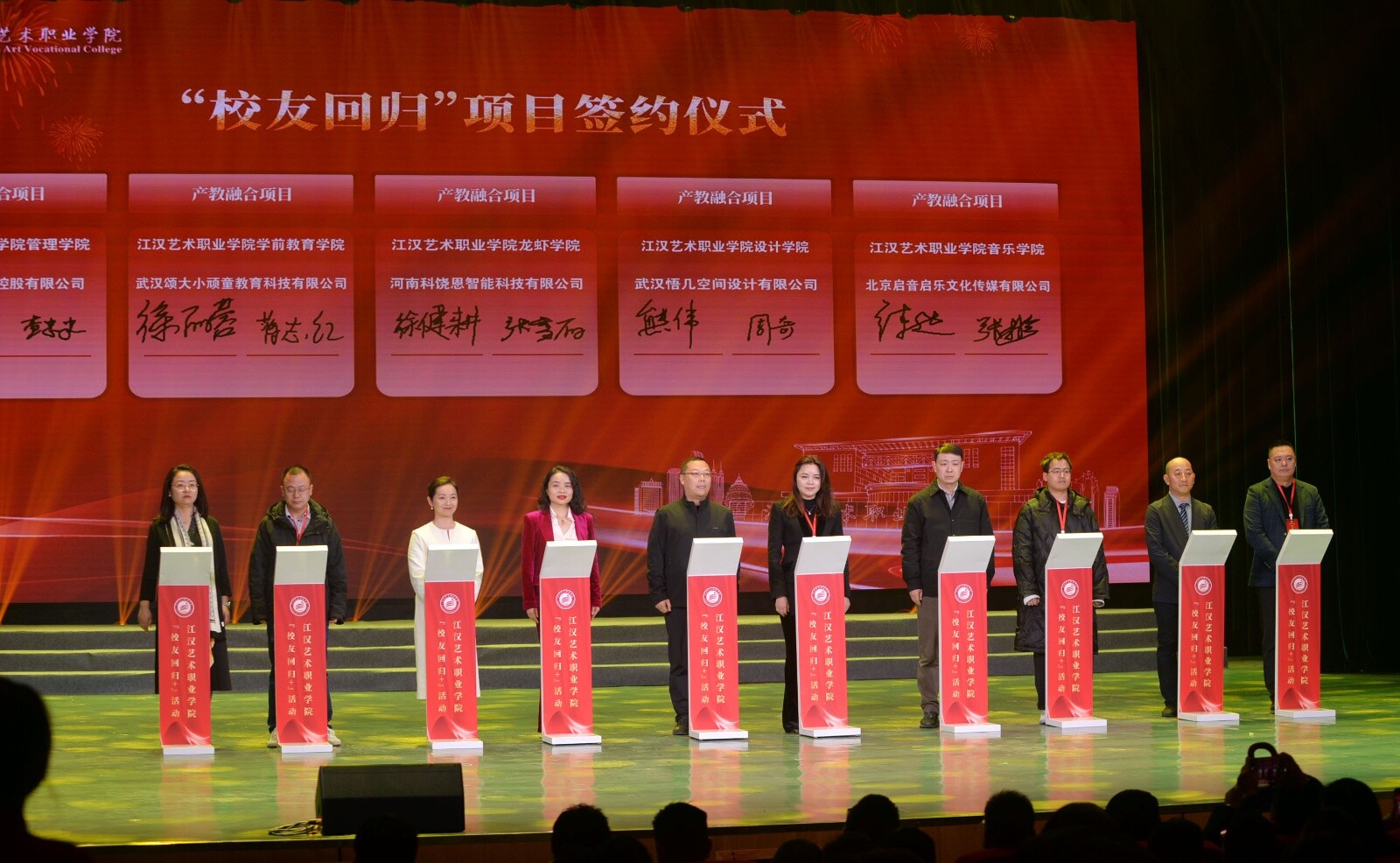 “活动的成功举办,凝聚起校地协同、校友同心的发展合力。”党委书记李飞表示,下一步,学校将持续深耕校友资源、做强校友平台,积极推动“校友+智力、科技、项目、企业、教育”专项行动,推动科教资源向创新优势、人才优势、发展优势转化,为潜江在服务支点建设中勇当标杆提供有力支撑。学校近年来紧密对接潜江石油化工、纺织服装、小龙虾等重点产业,积极打造特色产业学院,走出了一条“校地共生、向新而行”的特色发展道路。