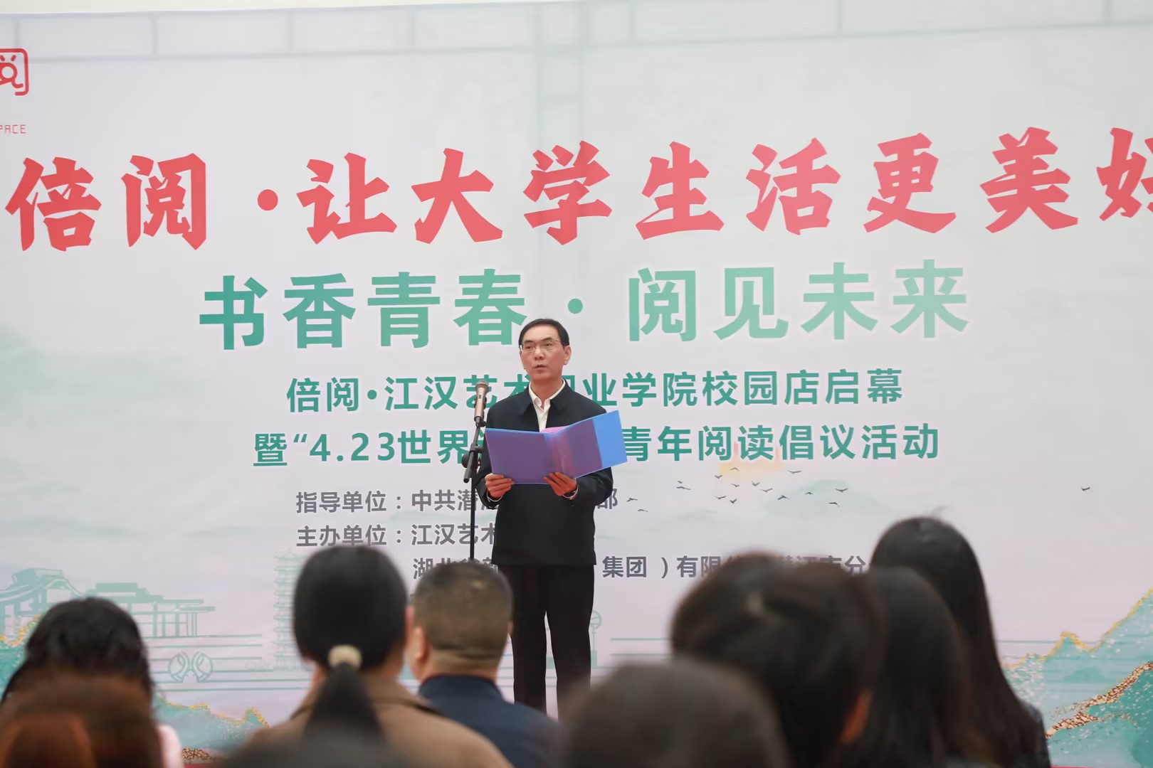 江职新闻网讯(通讯员 曾俊伟)4月14日,倍阅·江汉艺术职业学院校园店启幕暨“4.23世界读书日”青年阅读倡议活动在我校举行。