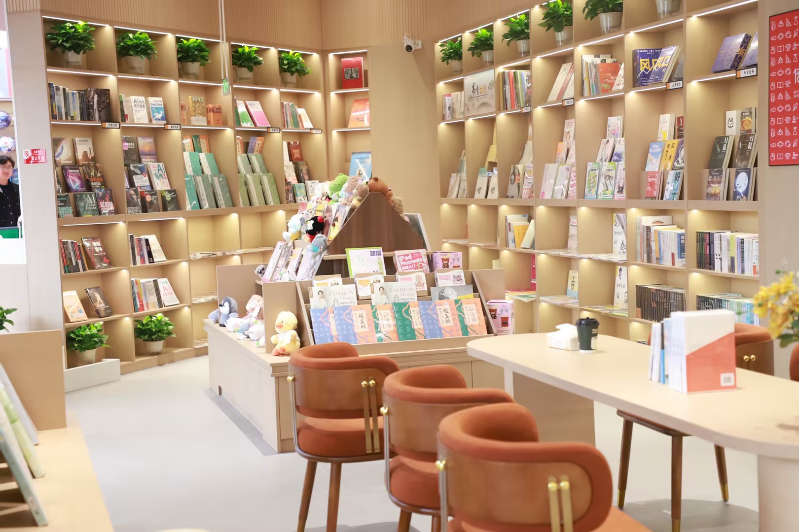 书店集图书阅读、咖啡茶饮、文创展示、文化沙龙于一体,精选近万册精品图书,覆盖人文社科、专业教材、文学经典、青年成长等多个领域,兼顾师生多元化阅读需求。店内空间设计融合校园青春气息与简约时尚风格,功能分区清晰,设置有开放式阅读区和青年交流区,为师生提供舒适惬意的阅读与交流空间。