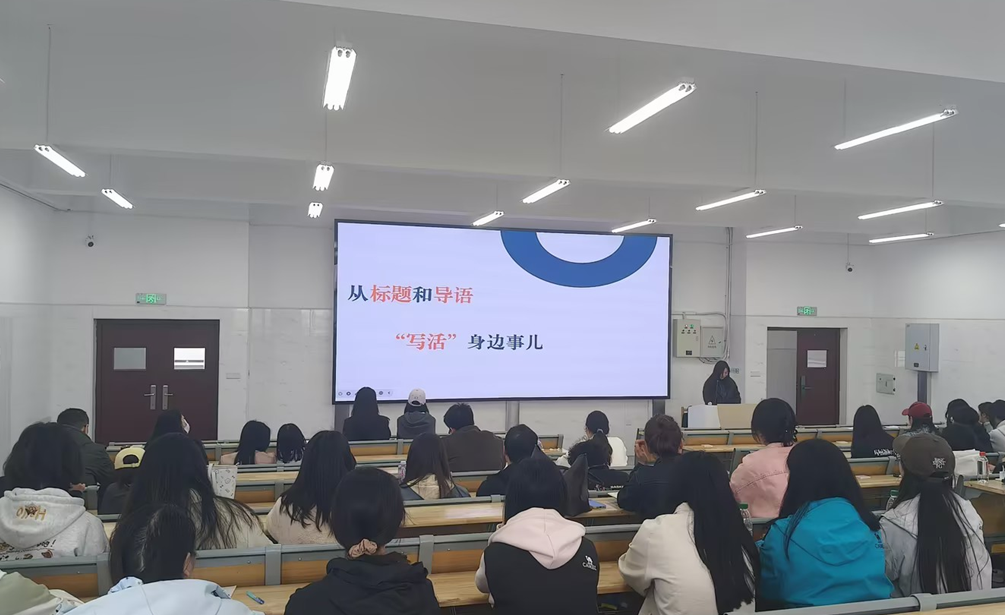 讲座围绕新闻标题拟定、导语写作、短视频内容创作等内容展开。张盼结合校园宣传实际,讲解新闻点挖掘方法,分享标题创作技巧。