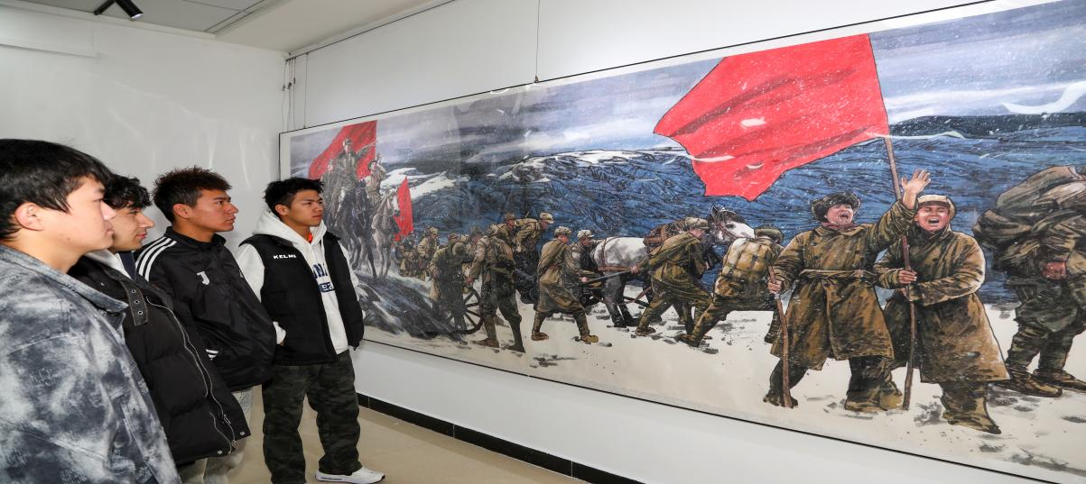 在专业讲解员的细致讲解下,同学们驻足观赏,用心感受艺术的洗礼,文化的冲击所产生的强烈震撼与独特魅力,深刻理解了“文艺润天山”的深厚内涵。