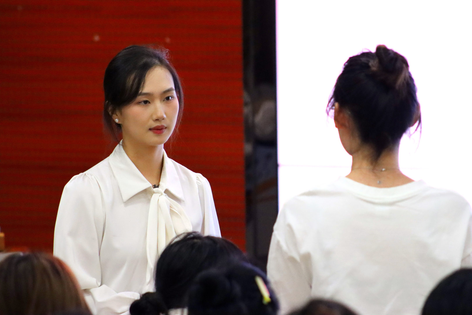 优质班会课竞赛现场,辅导员态度亲切、语言规范、表达流畅。每个团队辅导员以饱满的热情和默契的配合展现了团队特色,课堂环环相扣精彩纷呈,有激烈的讨论,有震撼的视频,有趣味竞答,有生动的表演,有生生和师生之间思想碰撞的火花闪现,现场气氛热烈。