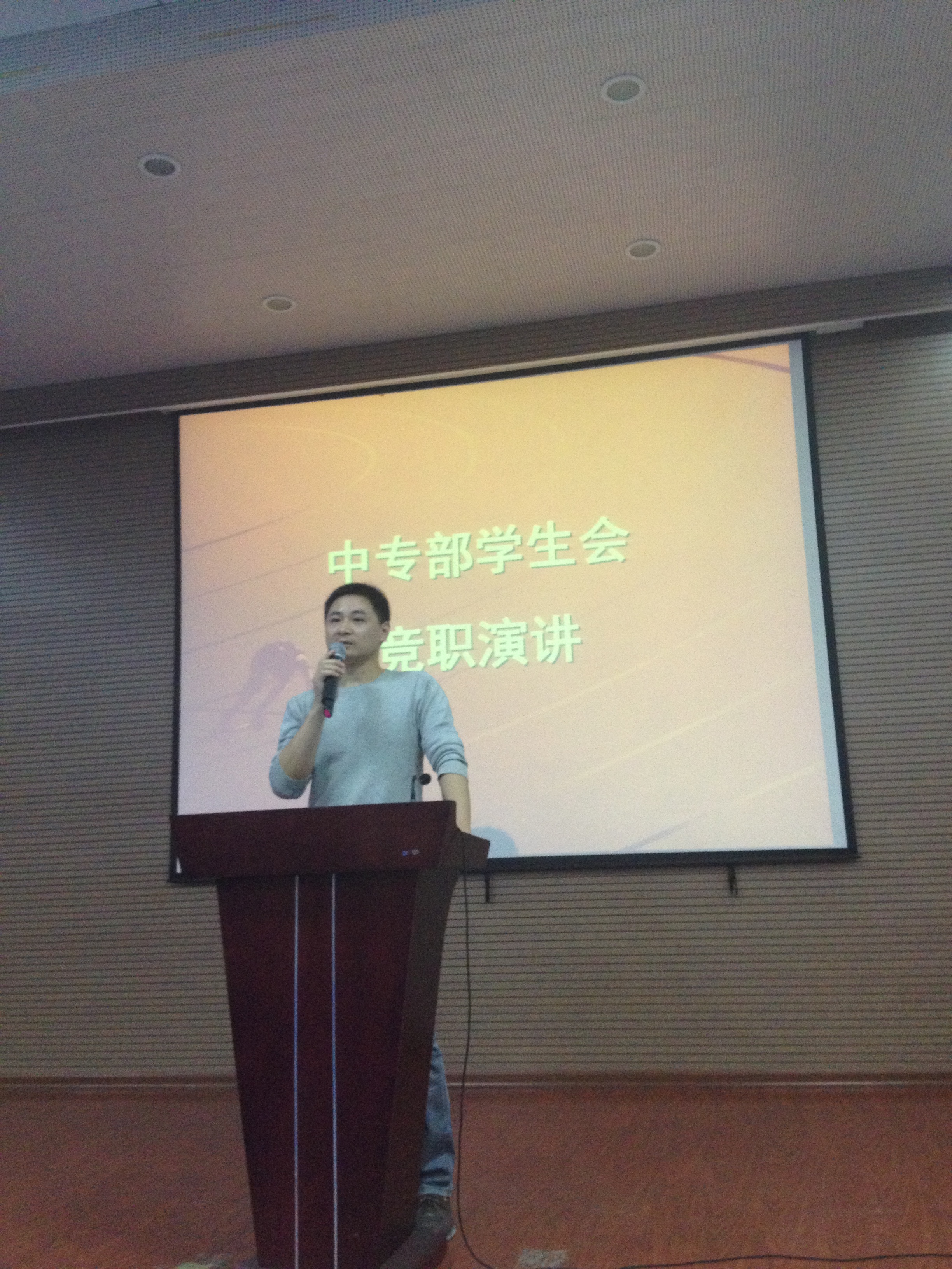 10月15日晚7点,中专部学生会换届选举在八号报告厅如期举行,共有18名学生参加了此次竞选活动,竞选的岗位包括学生会主席、分团委副书记、秘书处和学习部、文体部等八个部门。
