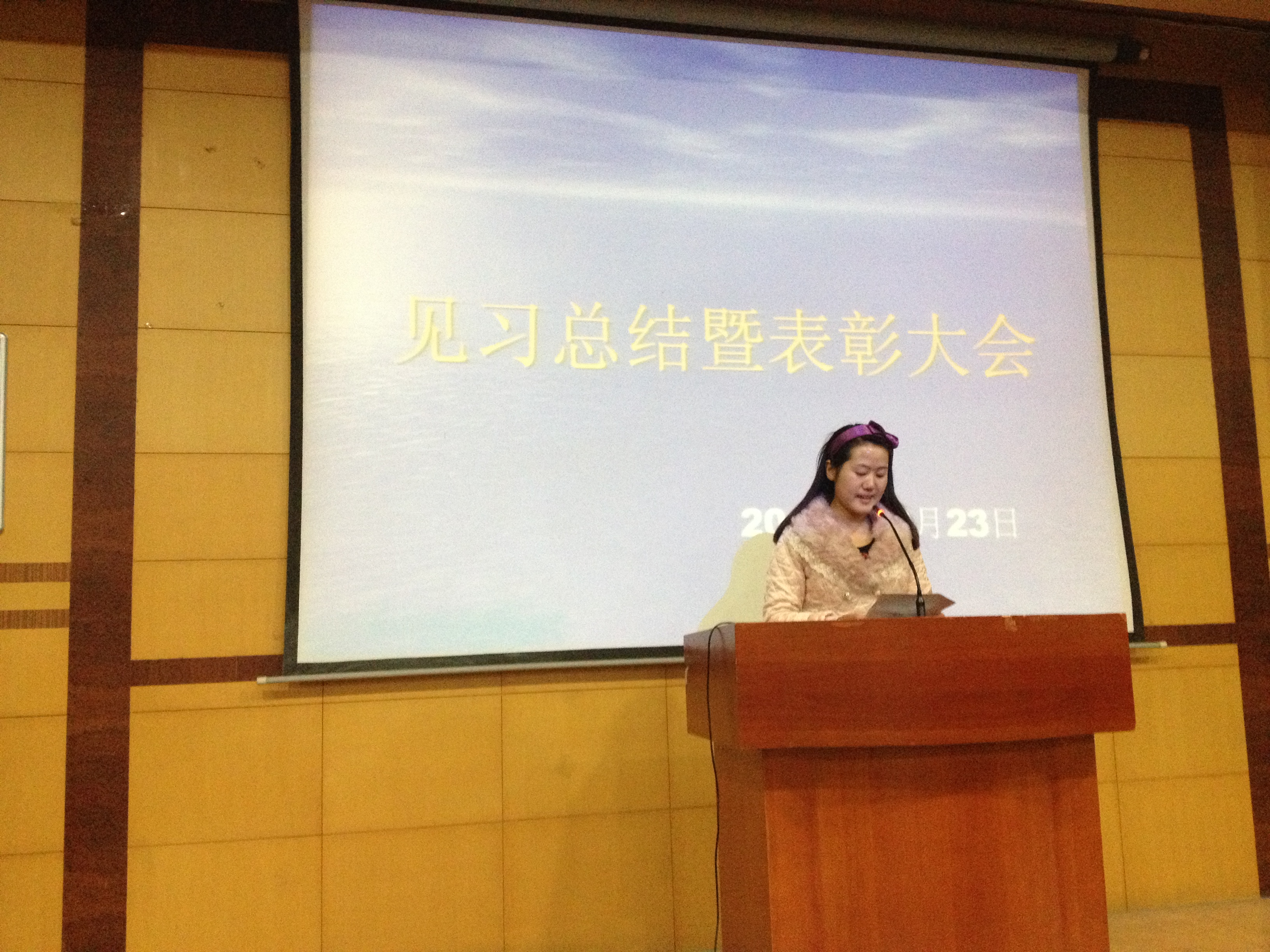 为总结此次活动,表彰激励优秀见习生,12月23日晚7点半,中专部在综合楼201教室召开了本学期的见习总结及表彰大会,表彰了王一鸣、严先慧、王颖等十二名优秀见习生。三个班级的优秀见习生代表李梦琪、李娜娜、袁兵娥分别发言,分享他们的见习所得,袁冰娥同学以自己的指导老师郑老师为榜样,决心投身幼教事业的热情深深地感染了在场的师生。最后,王祖艳副主任代表中专部领导作了见习总结,对学生们提出了殷切的希望,希望同学们能带着对幼师这个职业的巨大热情,努力,努力,再努力,抓住剩余的时光,在校打好本领,在以后的职业生涯中赢得更多的鲜花与掌声。