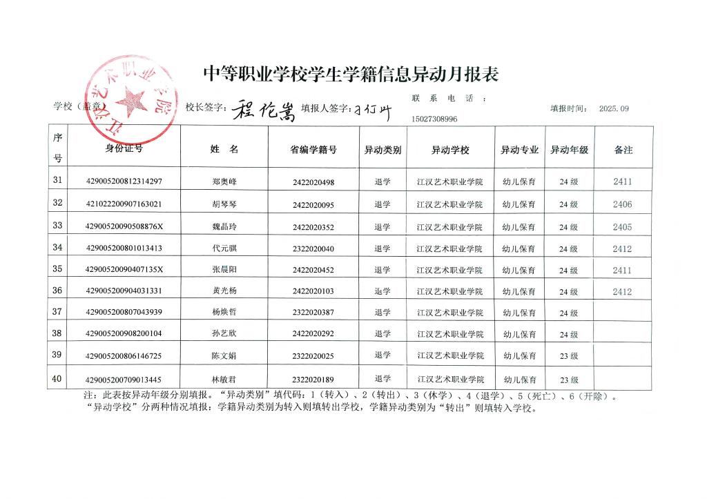 根据江汉艺术职业学院《学生管理规定》(2017年印发)第三章第五节第三十条(五)之规定,学生本人申请退学的,经学校审核同意后,办理退学手续;现将退学、复学名单公示如下: