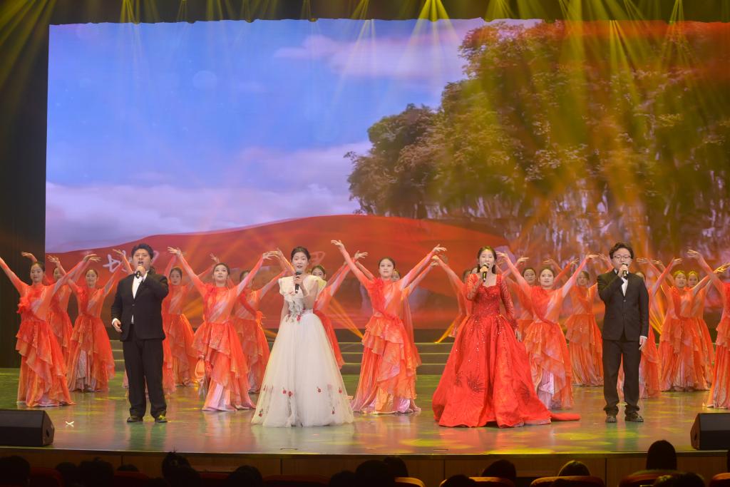第二章:华彩·薪火相传。群舞《蜀女簪花落红颜》重现古典风韵,独唱《天上雾腾腾》展现乡土情怀,舞蹈《散乐图》活化历史画卷,歌舞《天下有个拖船埠》讴歌红色精神,彰显文化传承的生生不息。