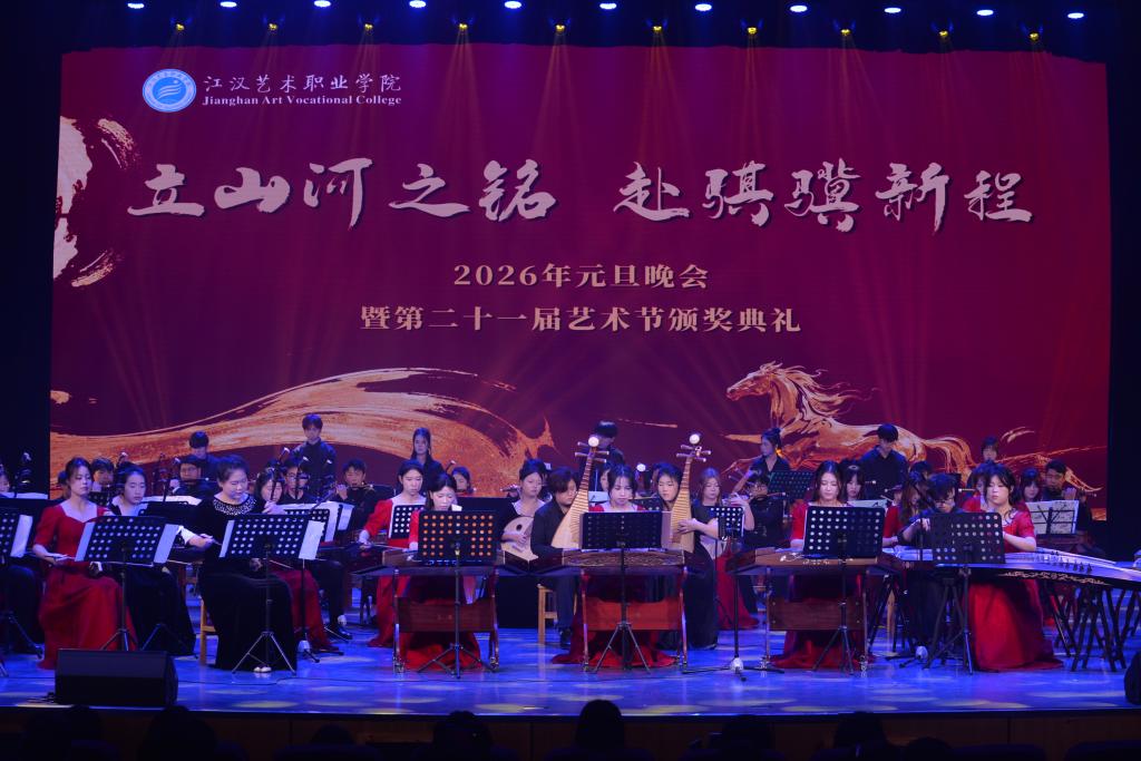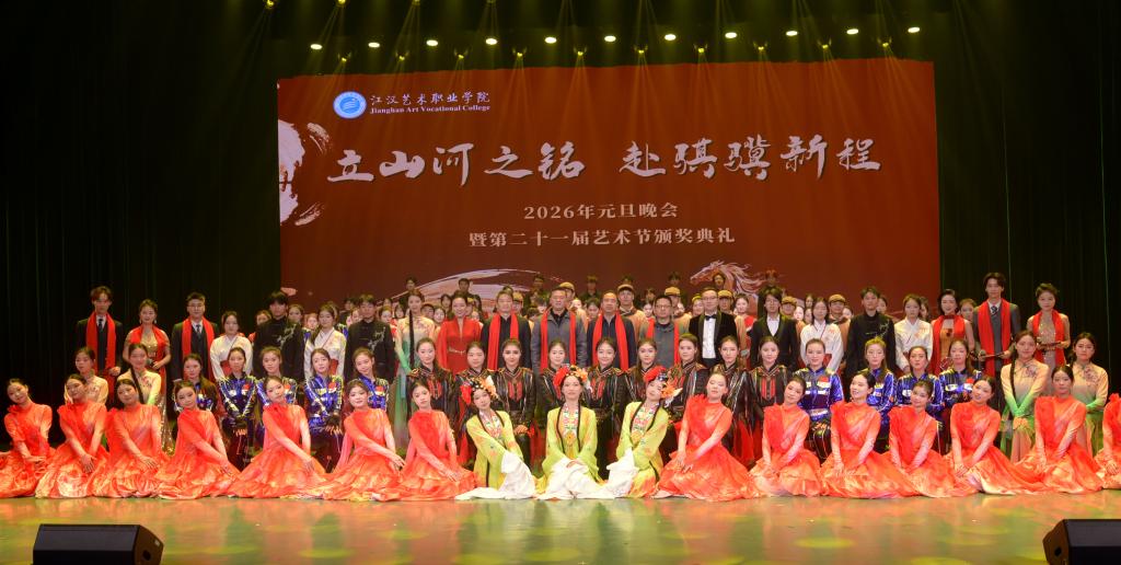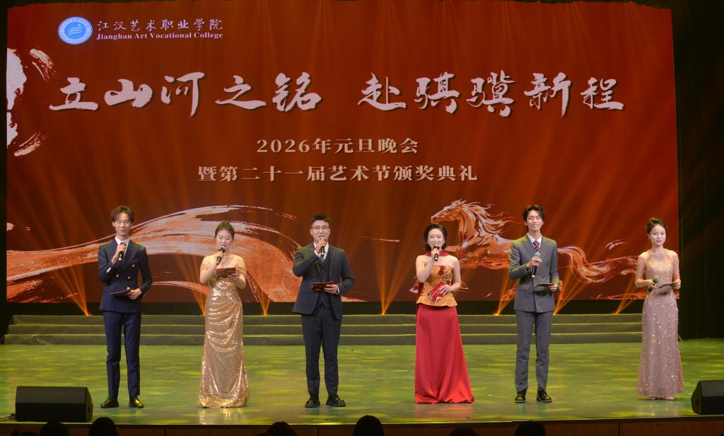 12月30日,我校举办了“立山河之铭 赴骐骥新程”2026年元旦晚会暨第二十一届艺术节颁奖典礼。江汉艺术职业学院党委副书记、校长程伦嵩;党委委员、纪委书记黄超;党委委员、副校长李伟;党委委员、副校长周剑波;以及各院部的老师与同学们齐聚一堂共同庆祝新岁。