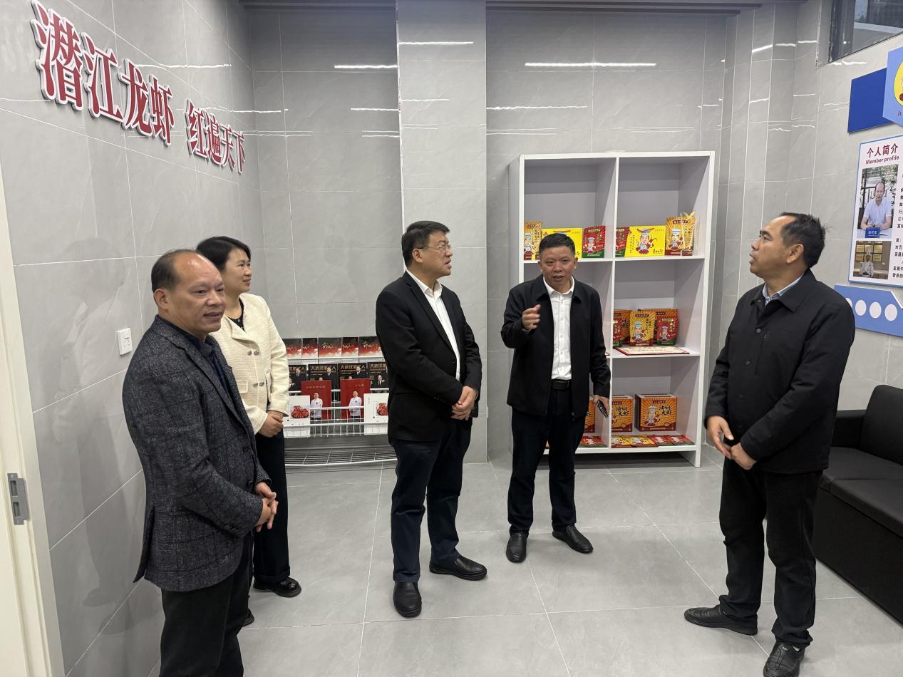 作为深度合作共建单位代表,江汉艺术职业学院党委副书记、校长程伦嵩,潜江龙虾产业学院副院长喻正升,潜江油焖大虾非遗传承人、学院客座教授李代军共同参与接待,并就工作室建设进展及产业赋能成效作详细汇报。