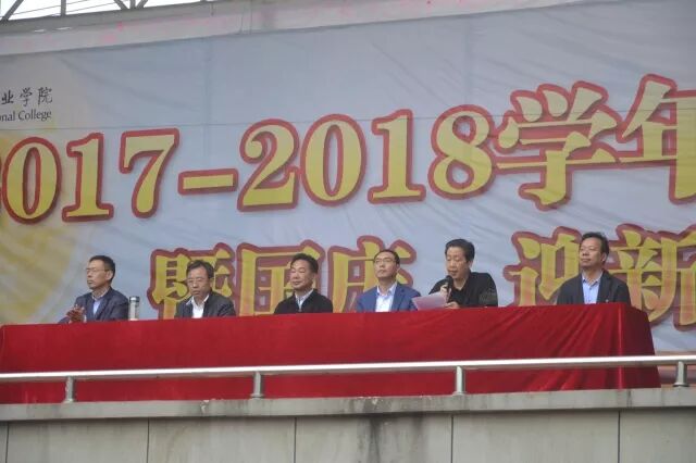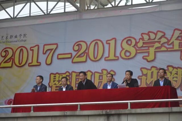 2017年10月10日下午,江汉职业艺术职业学院2017级新生开学典礼在学校操场隆重举行。学院领导院长李飞、党委副书记陈俊平、常务副院长李永华、副院长关宗平、纪委书记杨永贵、党委委员办公室主任廖兆泉出席本次大会。大会由常务副院长李永华老师主持。