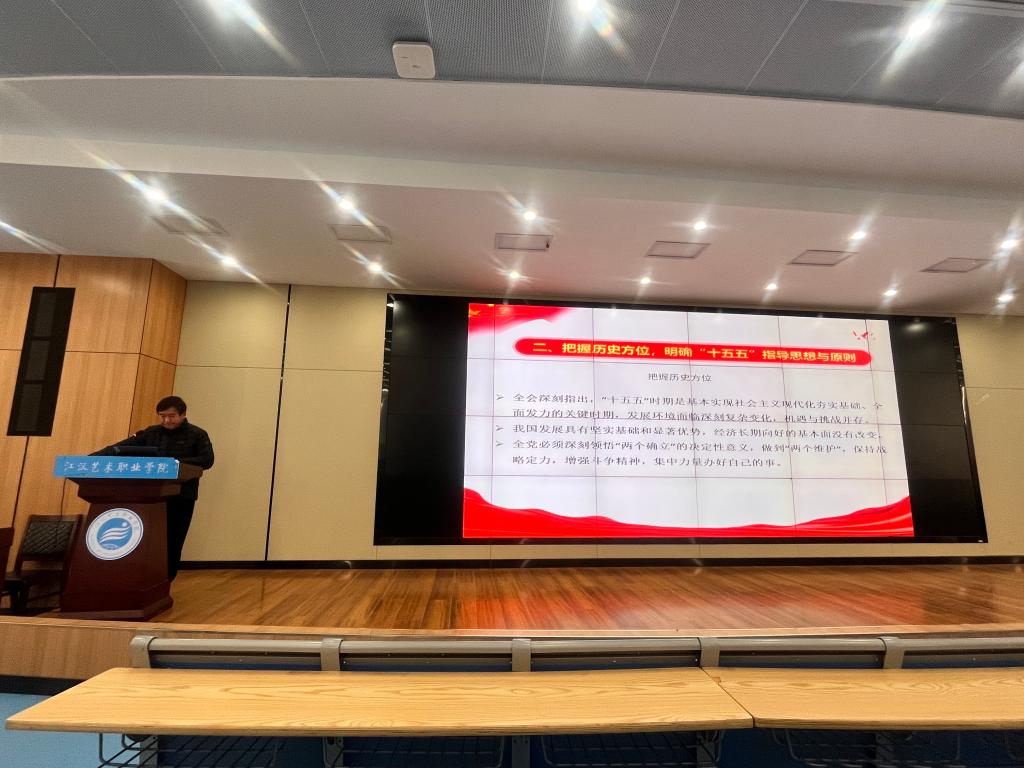 宣讲会上,董元庆副教授以“擘画未来蓝图”为题,从党的四中全会内涵是什么、“十四五”期间的重大成就、党的二十届四中全会究竟擘画了怎样的未来蓝图、把握历史方位,明确“十五五”指导思想与原则、确立主要目标,部署重点任务、凝聚奋进力量,抓好贯彻落实等六个方面进行了系统解读和深度阐释,帮助师生代表全面把握全会精神实质,精准明晰“十五五”发展方向,为主动担当现代化建设新使命筑牢思想根基。