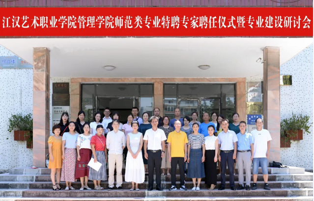 为进一步完善我院师范类专业人才培养方案,提升人才培养质量,8月7日上午,江汉艺术职业学院管理学院师范类专业特聘专家聘任仪式暨专业建设研讨会在综合楼二楼会议室召开。